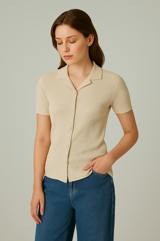 STYLOPHY - Cuban Shirt For Women - Beige
