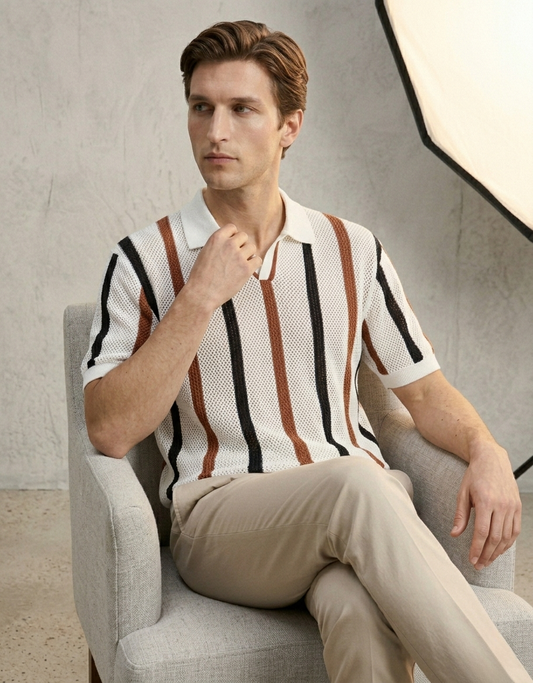 STYLOPHY - Premium Waffle Knitted Polo - Beige