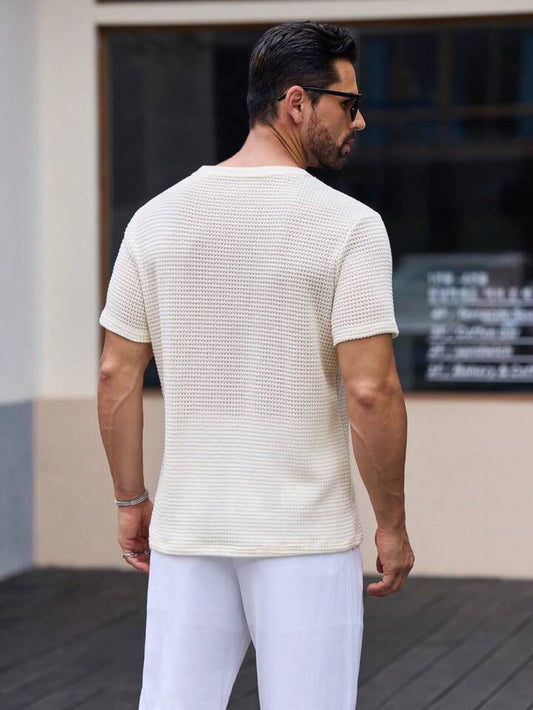 STYLOPHY - Premium Half Sleeves Waffle Knitted Tee - WHITE